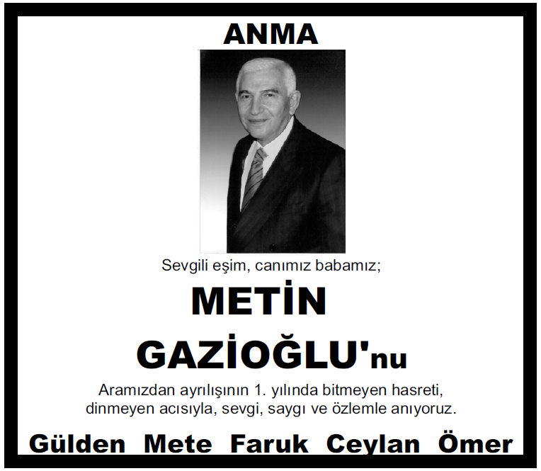 Yayınladığımız bazı anma ilanı örnekleri: