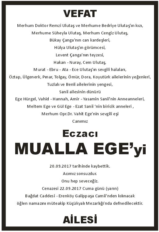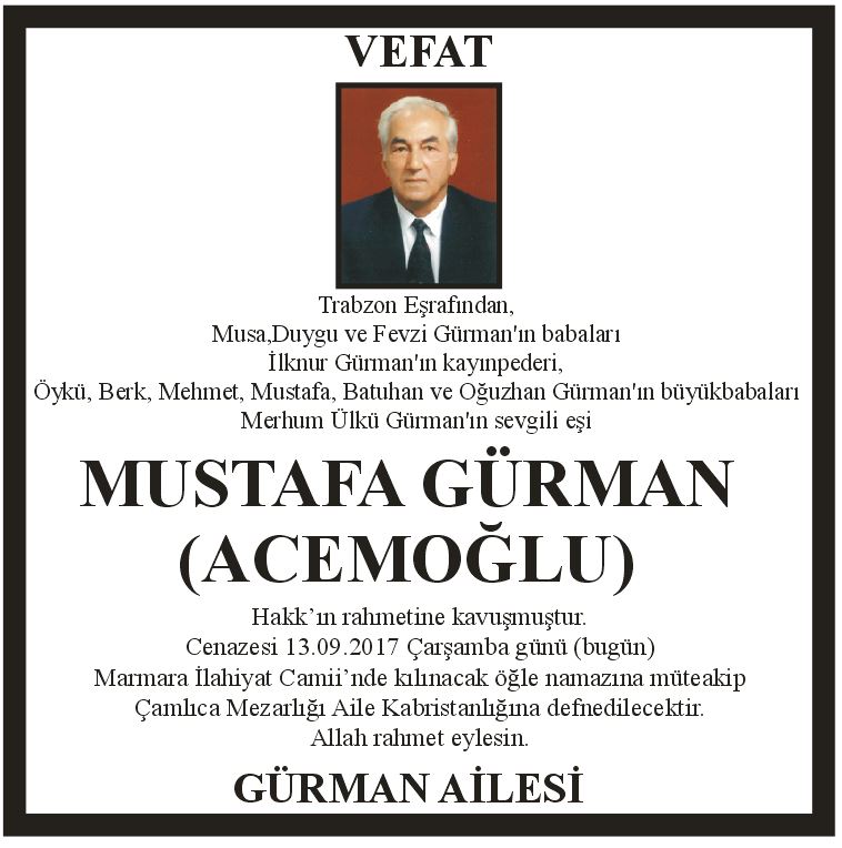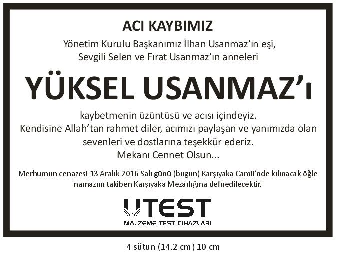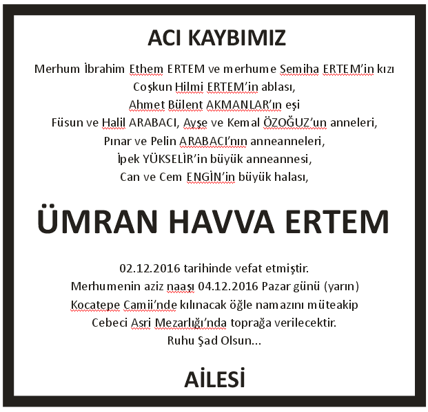 Yayınladığımız bazı Vefat ilanı örnekleri: