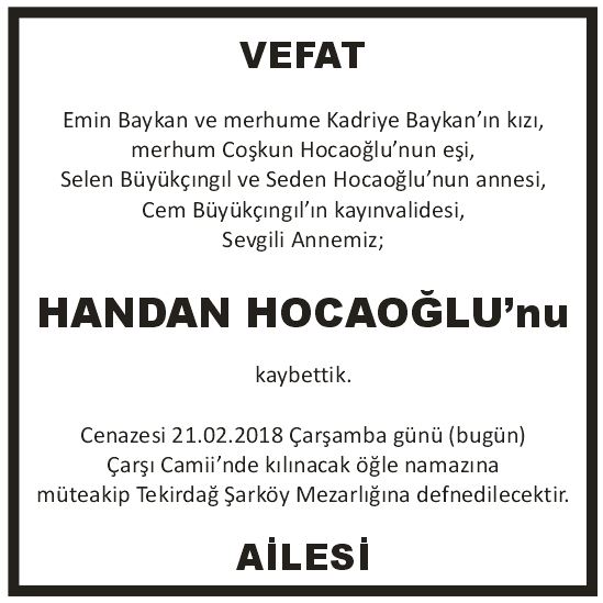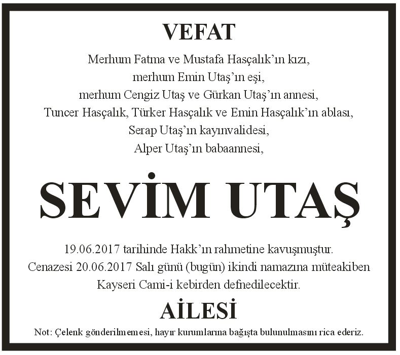 Vefat ilanı , ( ölüm ilanı) örnekleri